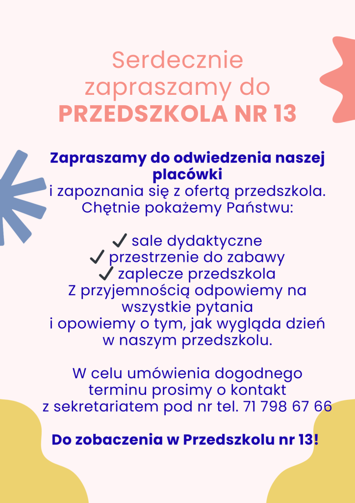 Serdecznie zapraszamy do PRZEDSZKOLA NR 13